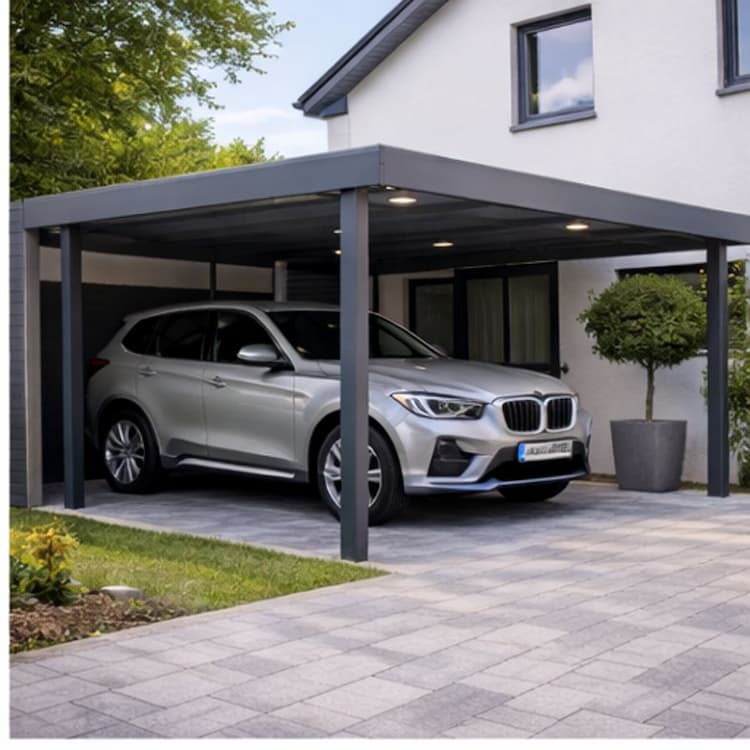 Bei modernen Einzelcarports stehen klare Linien, stabile Konstruktion und langlebige Materialien im Mittelpunkt. Stahl- oder Aluminiumprofile sorgen für eine hohe Tragfähigkeit, während pulverbeschichtete Oberflächen dauerhaft vor Korrosion schützen. Dadurch bleibt der Wartungsaufwand minimal und der Carport behält auch nach vielen Jahren seine hochwertige Optik.